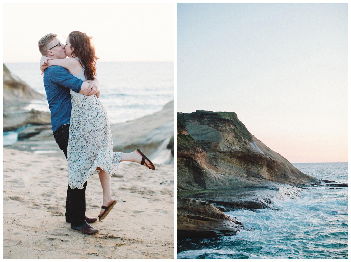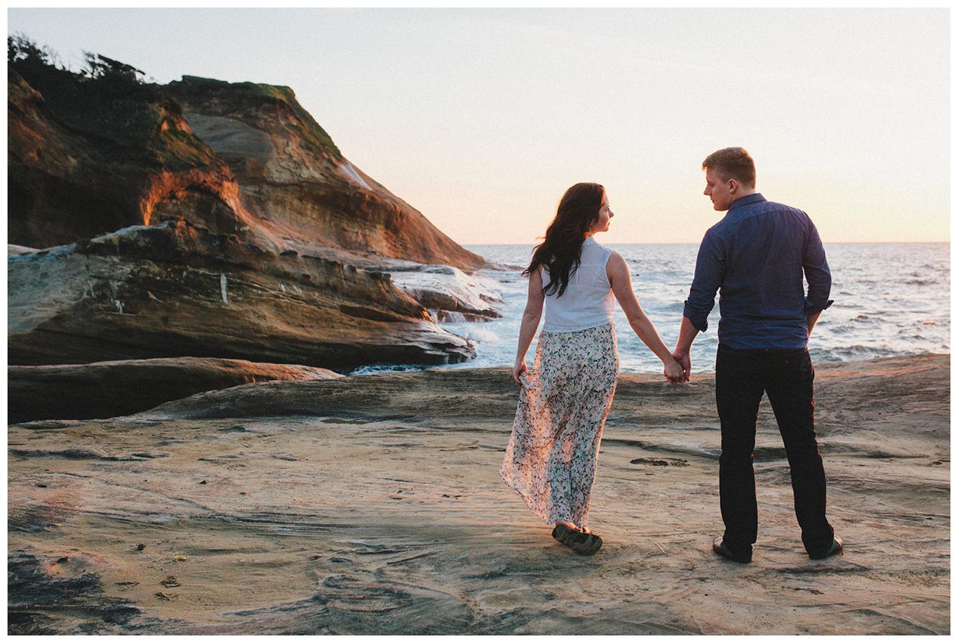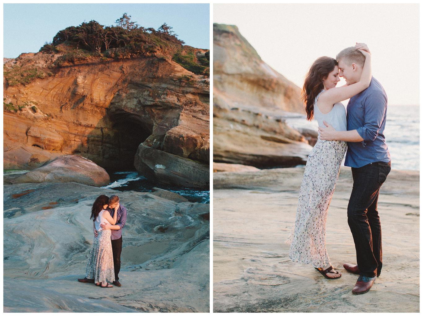 We set off in Jenny’s old car, blasting Zedd, Deorro and Zomboy, dancing in our seats the entire way to the coast. Part of her bumper fell off when we pulled into a gas station in Tillamook and we all piled out to fix it. We almost got lost on pothole-covered backroads. We bushwhacked through the forest to this amazing abandoned clearing, even though some of us were wearing white jeans. We got bit by tiny invisible bugs while walking over inland sand dunes. We climbed up cliffs and over hills and stood on precipices overlooking the sea. We watched the sun set as the tide rolled in around us. We played. Nothing beats living in the moment with the people you love. To be present. To soak it all in. That’s the way I want all my photoshoots to be. An extraordinary memory of an unforgettable adventure. And of course, filled to the brim with an overwhelming amount of love. That’s Jenny and Brandon for ya
