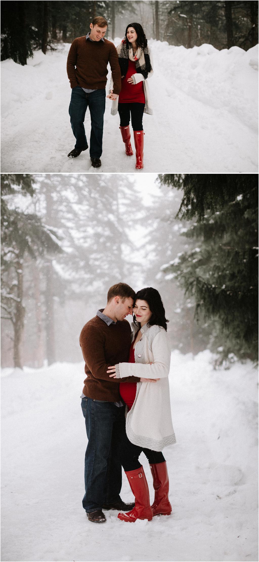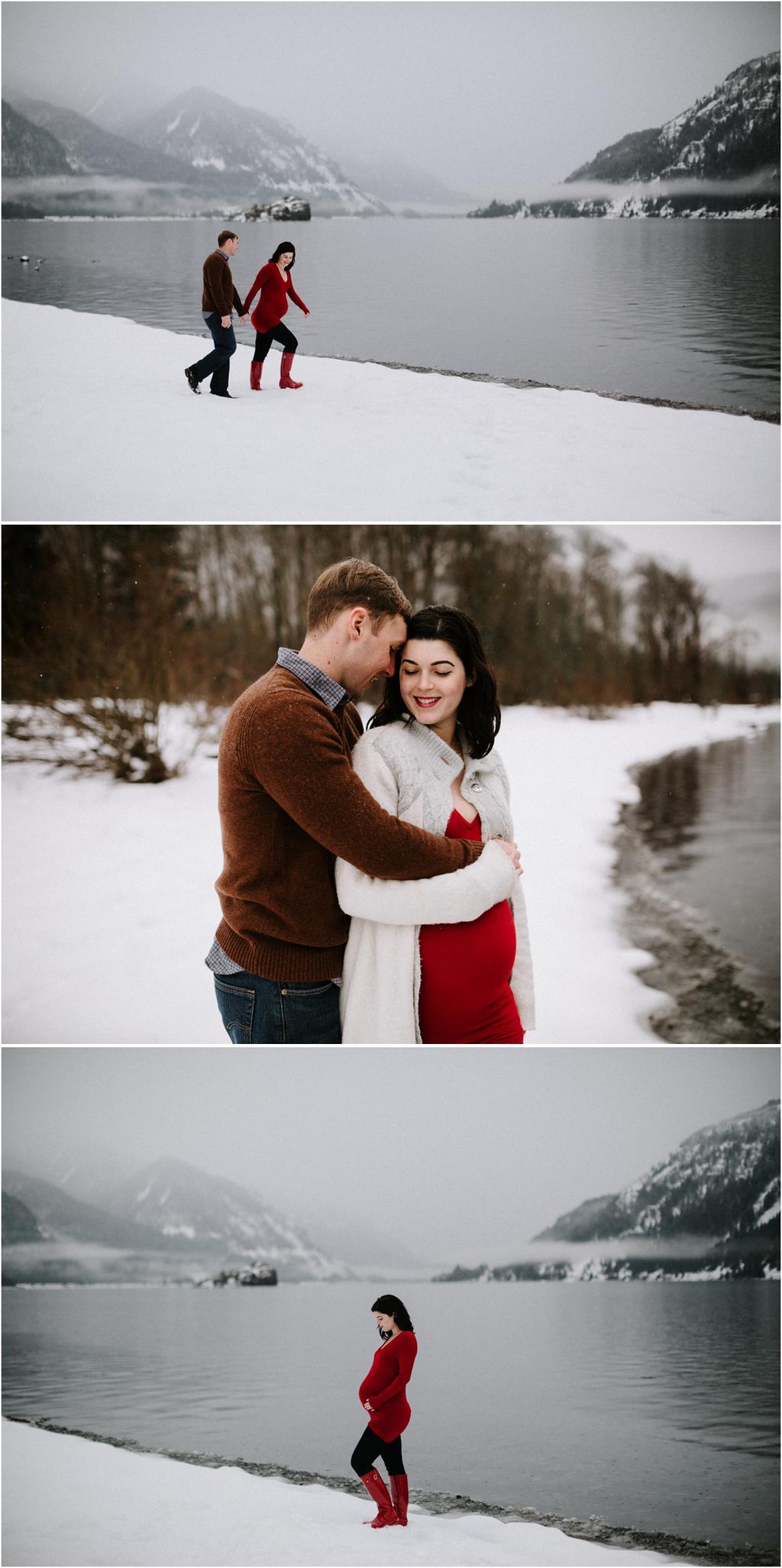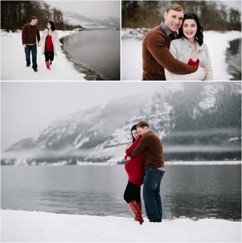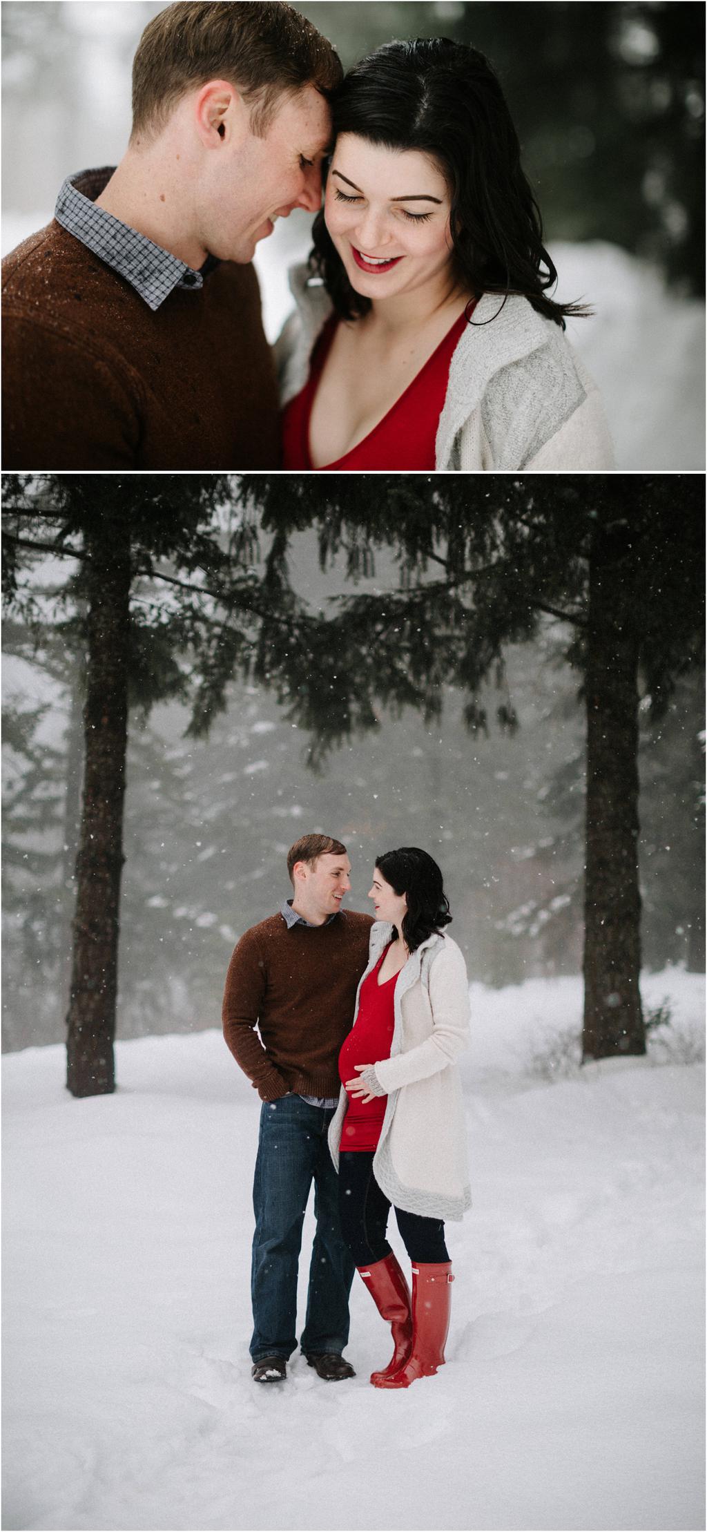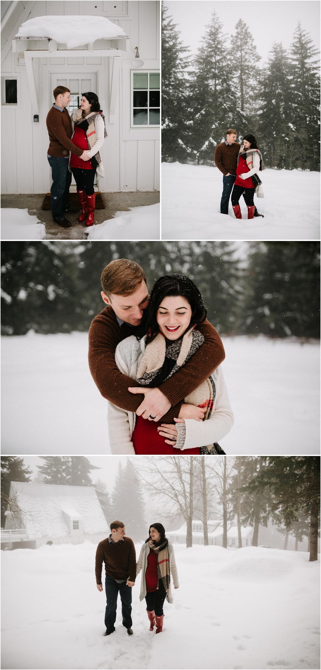 These winter maternity photos ended up being some of my favorite ever! Natalie rented this ADORABLE Airbnb (you can check it out here! )** **and it had the perfect white walls and minimalist vibes for a cozy indoor session. After we took a bunch inside, we ventured out around the property for a few shots in the snow, and finally ended up driving down toward the Columbia River Gorge to take a few more maternity photos at Viento State Park in the snow! It’s rarely snowy in the gorge like this, so we got super lucky! This whole session was a blast and I loved getting to go on a little adventure with them