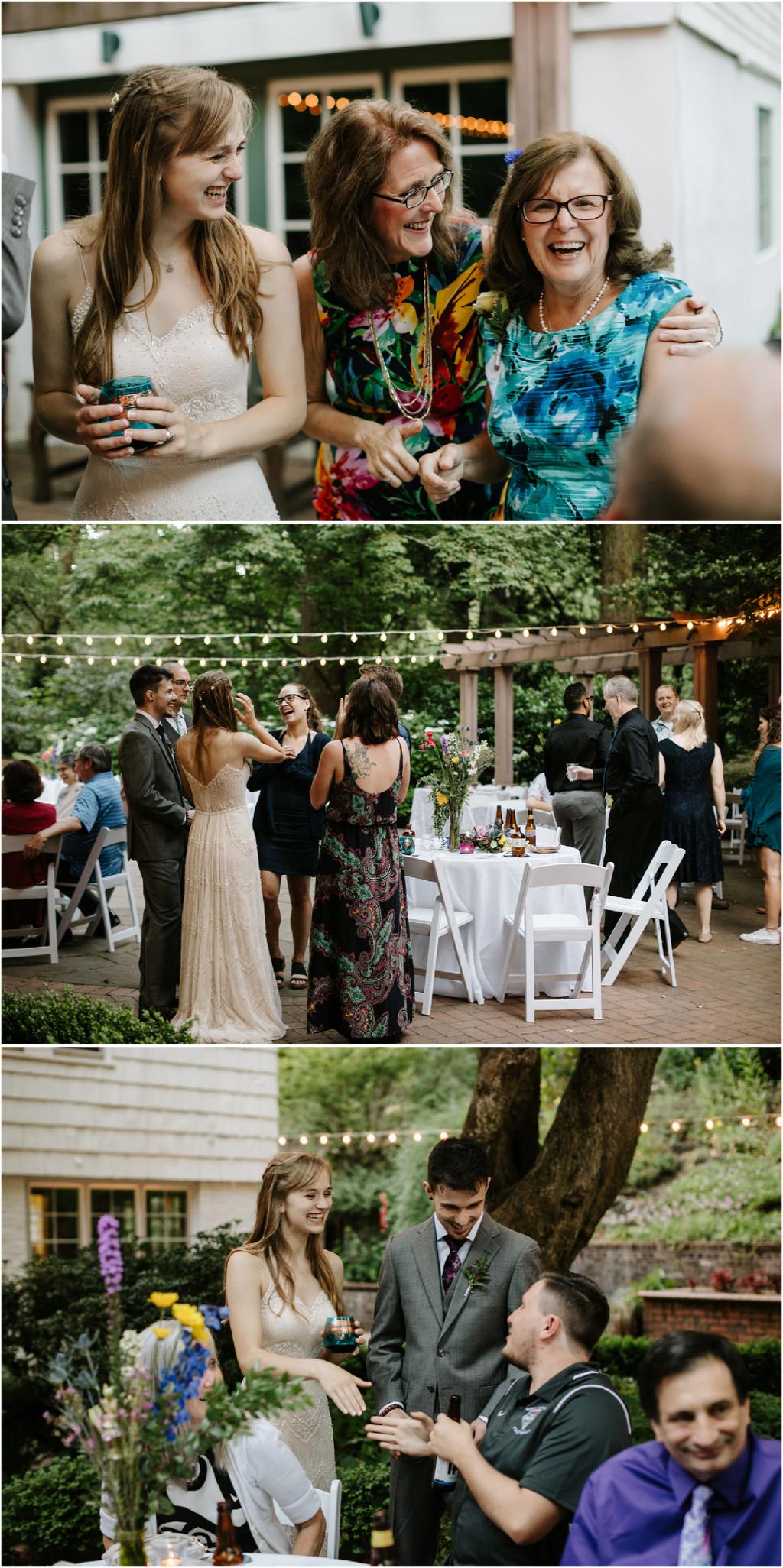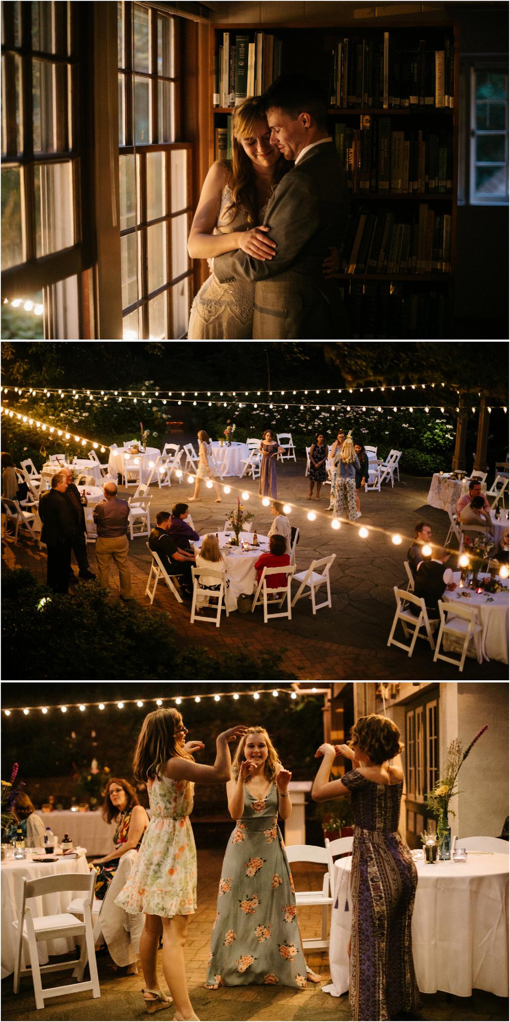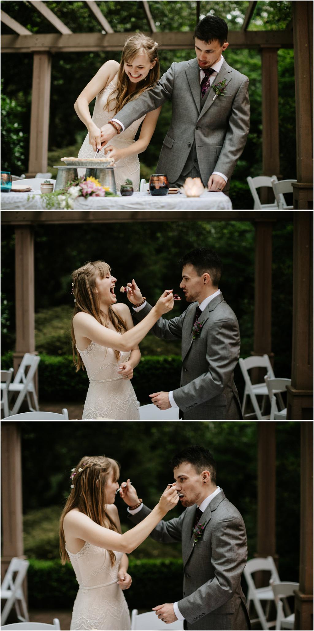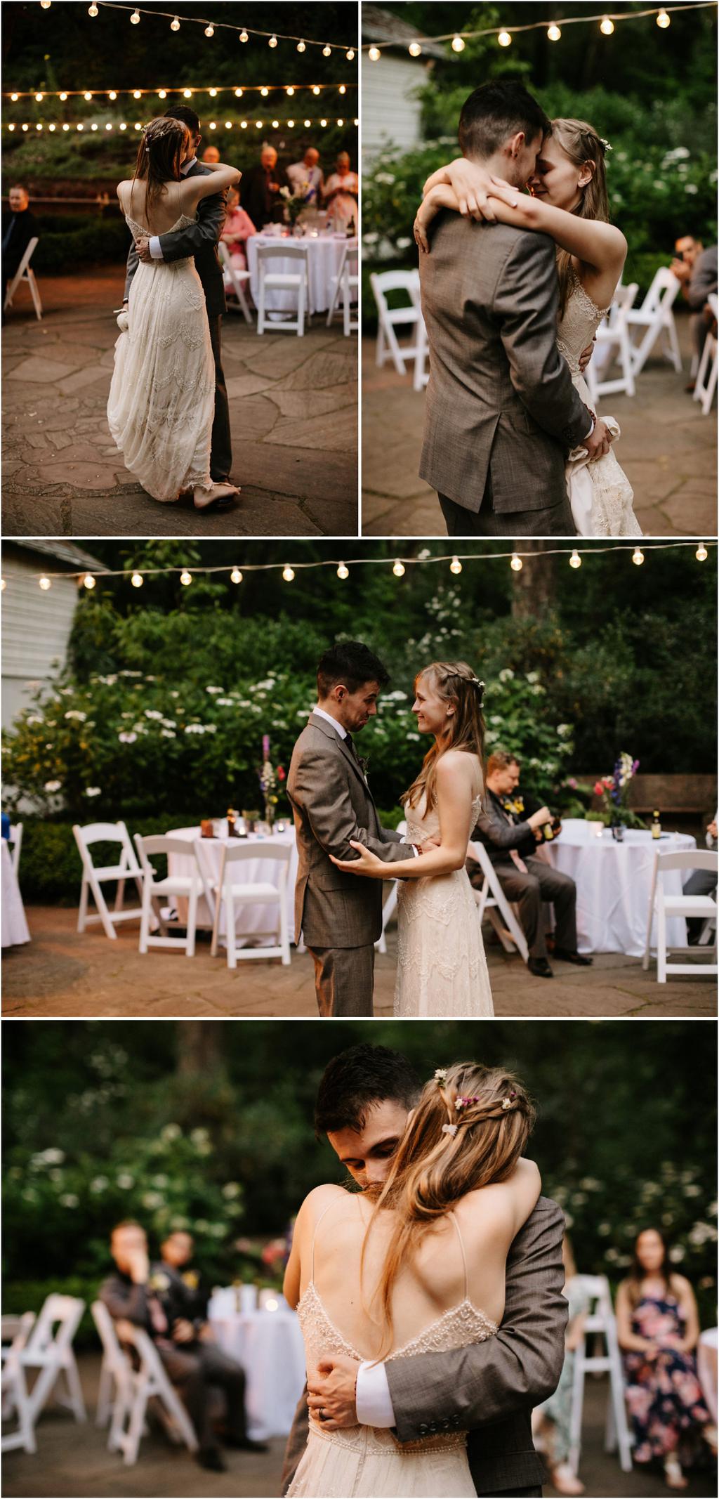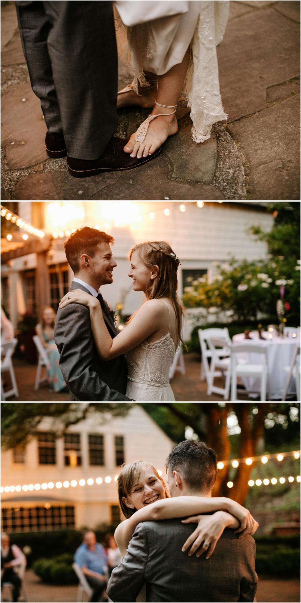 Venue: Leach Botanical Garden The Dress: Chic Nostalgia from the White Dress in downtown Flowers:ย ordered flowers from Portland Wholesale Florist, but made arrangements themselves S’Mores: S’mores from **Nineteen27 S’moresย ** Doughnuts: from Voodoo Beer and Wine: from **My Bartenderย ** Cold Brew Coffee: from **Coffee Timeย ** Kombucha: from **Townshend’sย ** Barefoot Sandals:ย handmade by bride’s aunt Menswear + website: **Men’s Warehouseย **