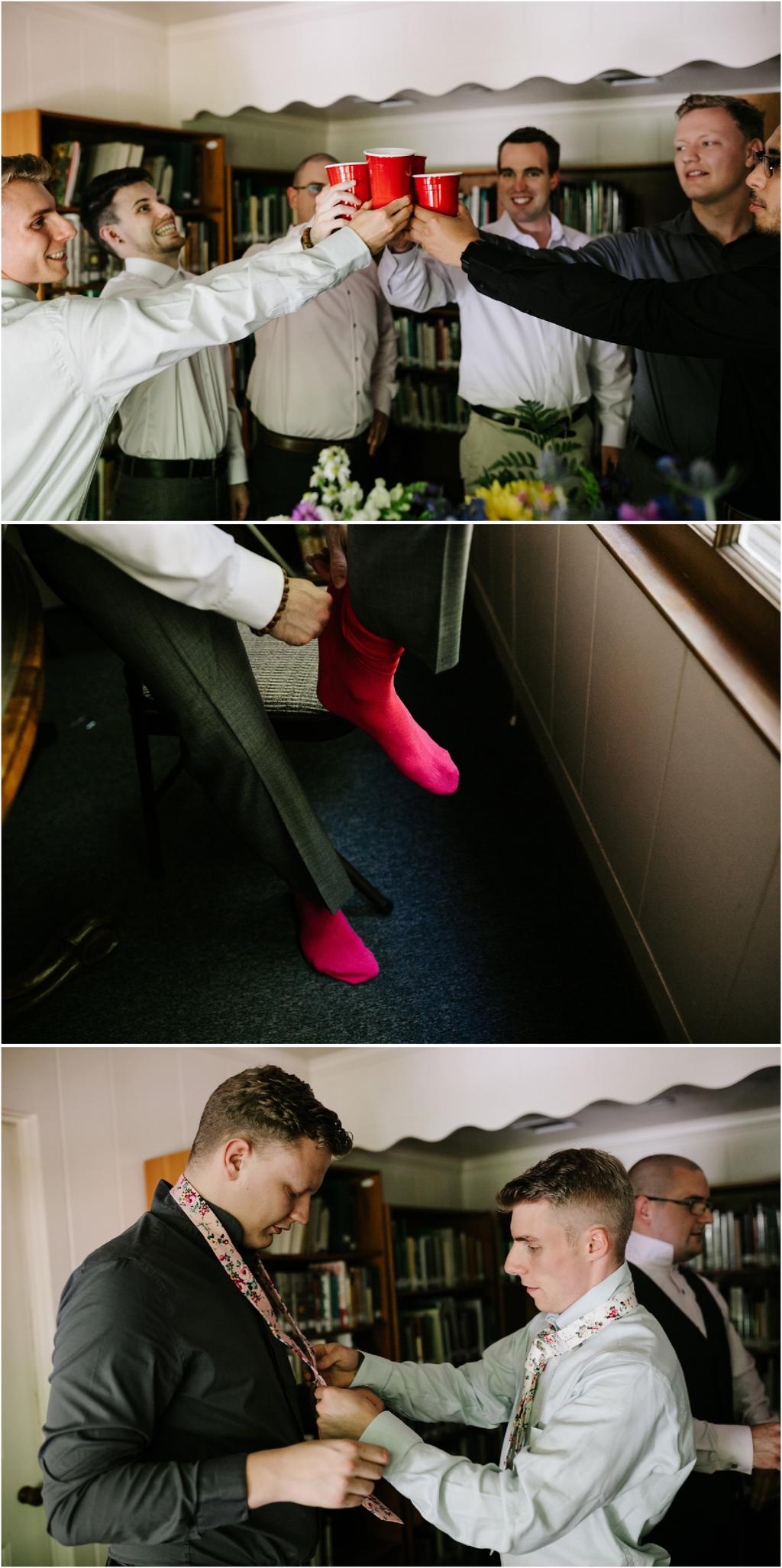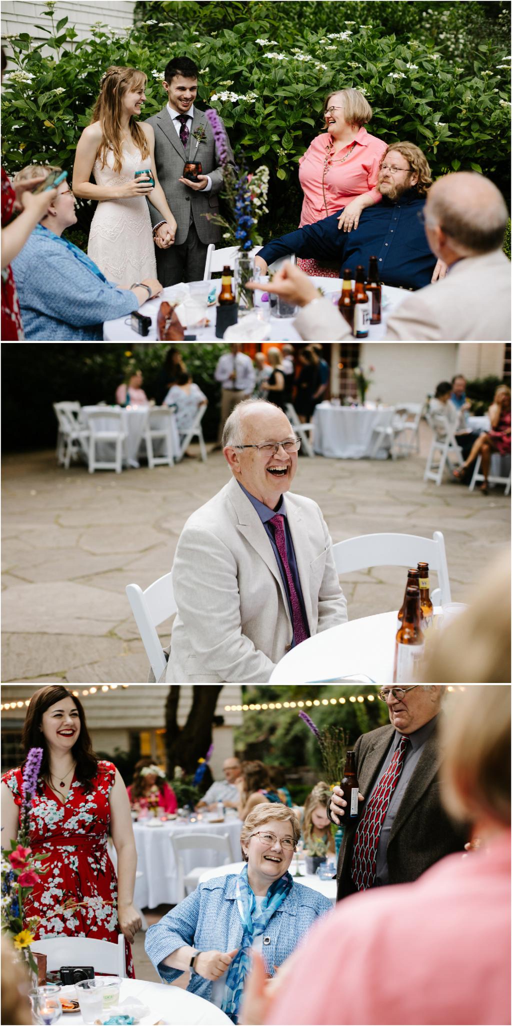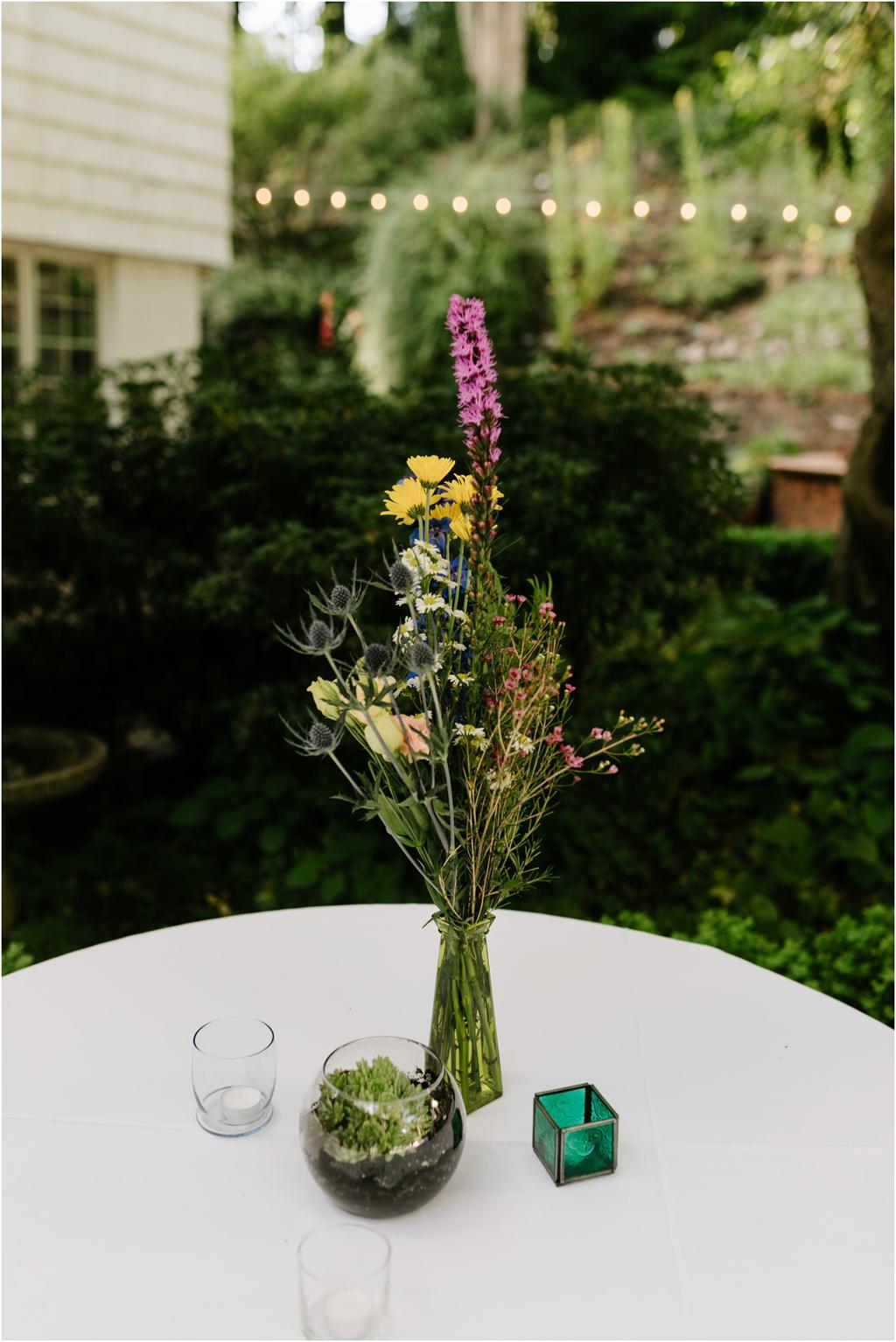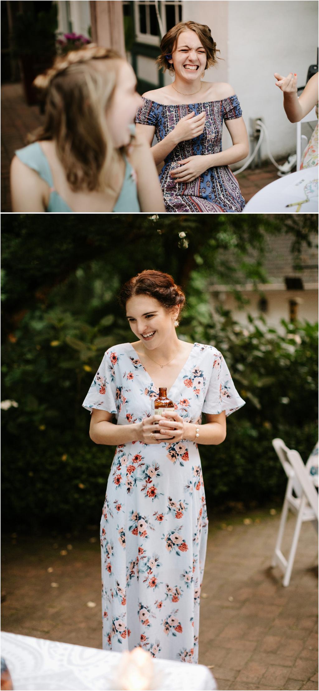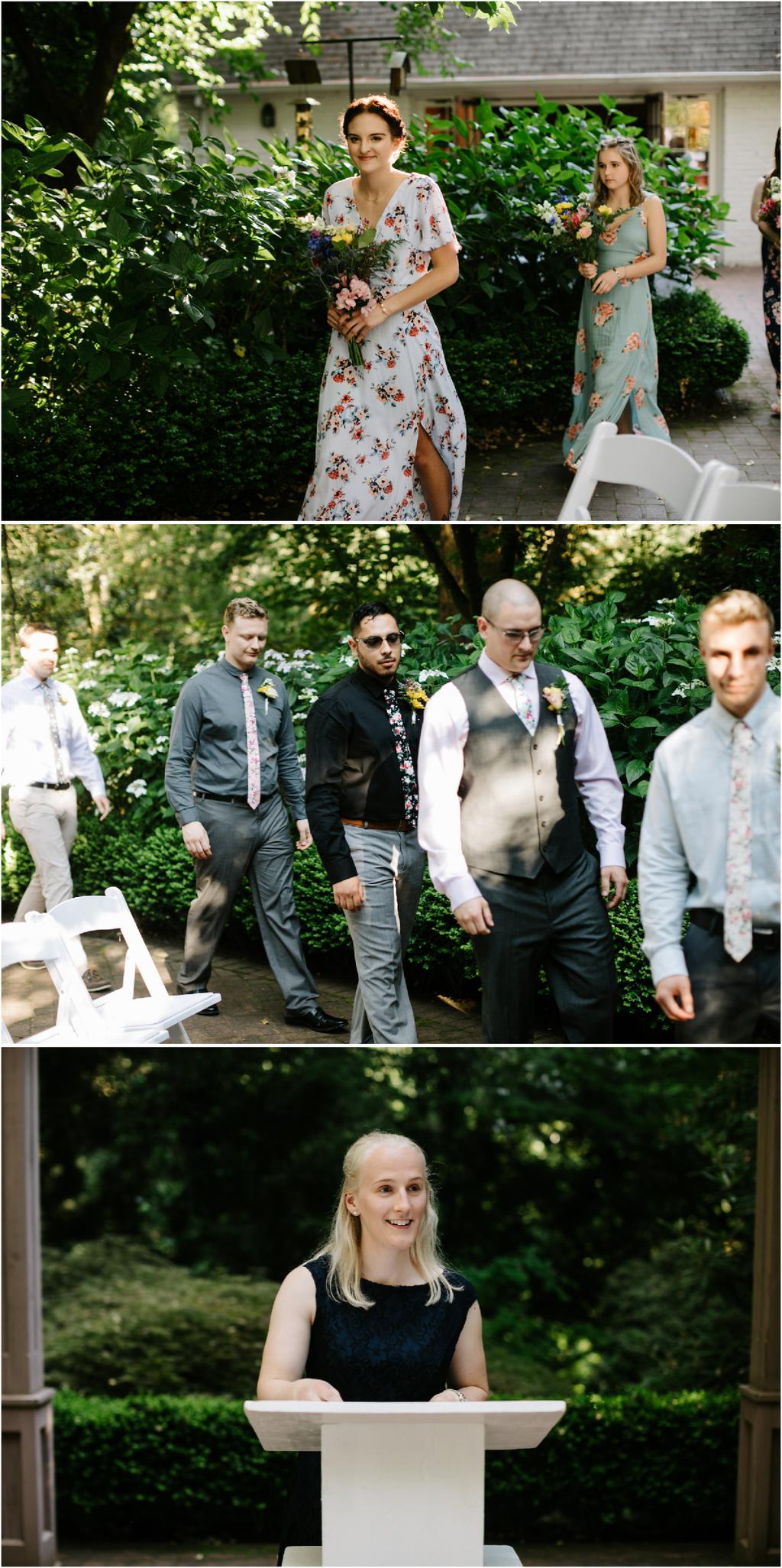 Venue: Leach Botanical Garden The Dress: Chic Nostalgia from the White Dress in downtown Flowers:ย ordered flowers from Portland Wholesale Florist, but made arrangements themselves S’Mores: S’mores from **Nineteen27 S’moresย ** Doughnuts: from Voodoo Beer and Wine: from **My Bartenderย ** Cold Brew Coffee: from **Coffee Timeย ** Kombucha: from **Townshend’sย ** Barefoot Sandals:ย handmade by bride’s aunt Menswear + website: **Men’s Warehouseย **