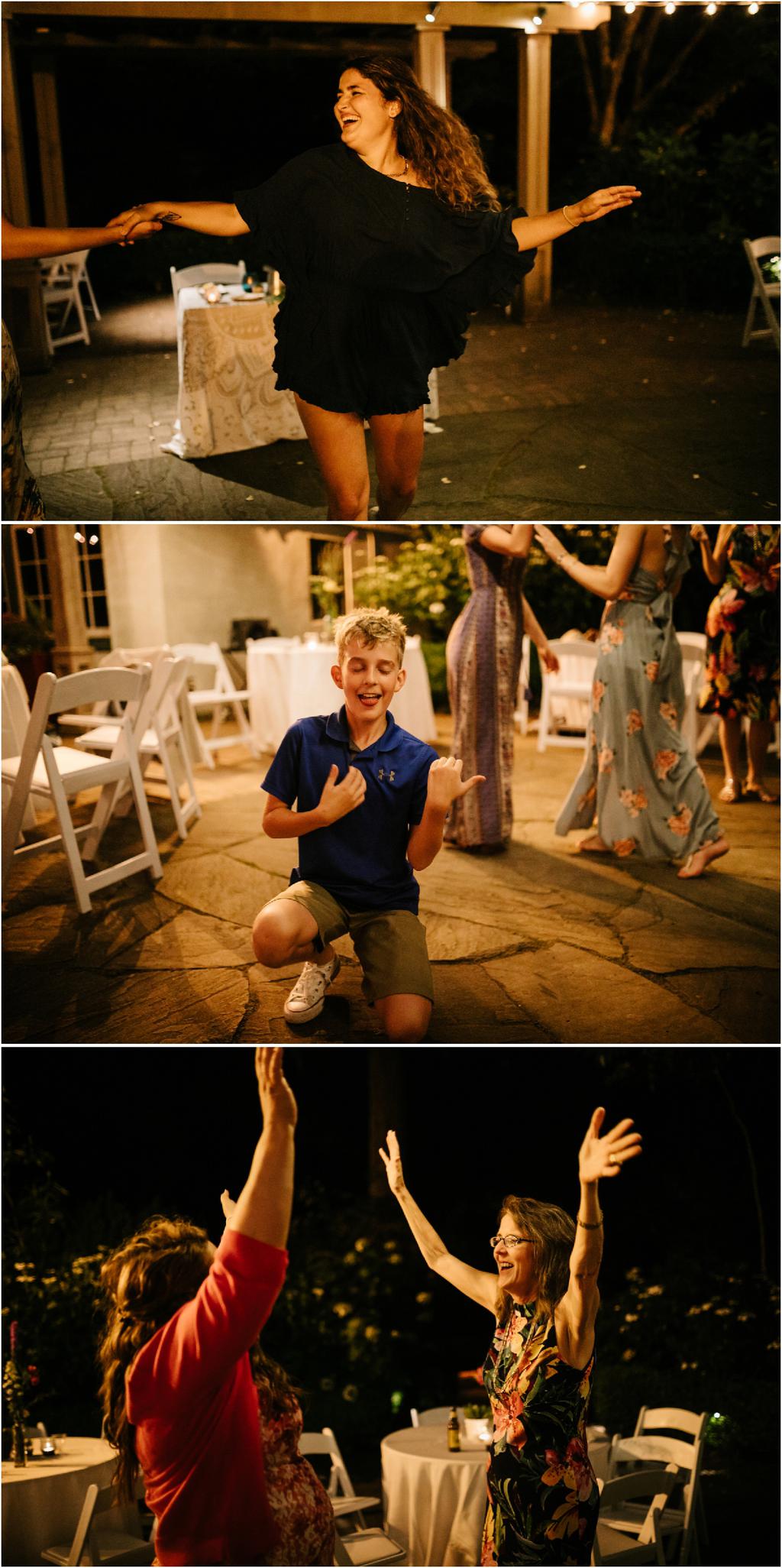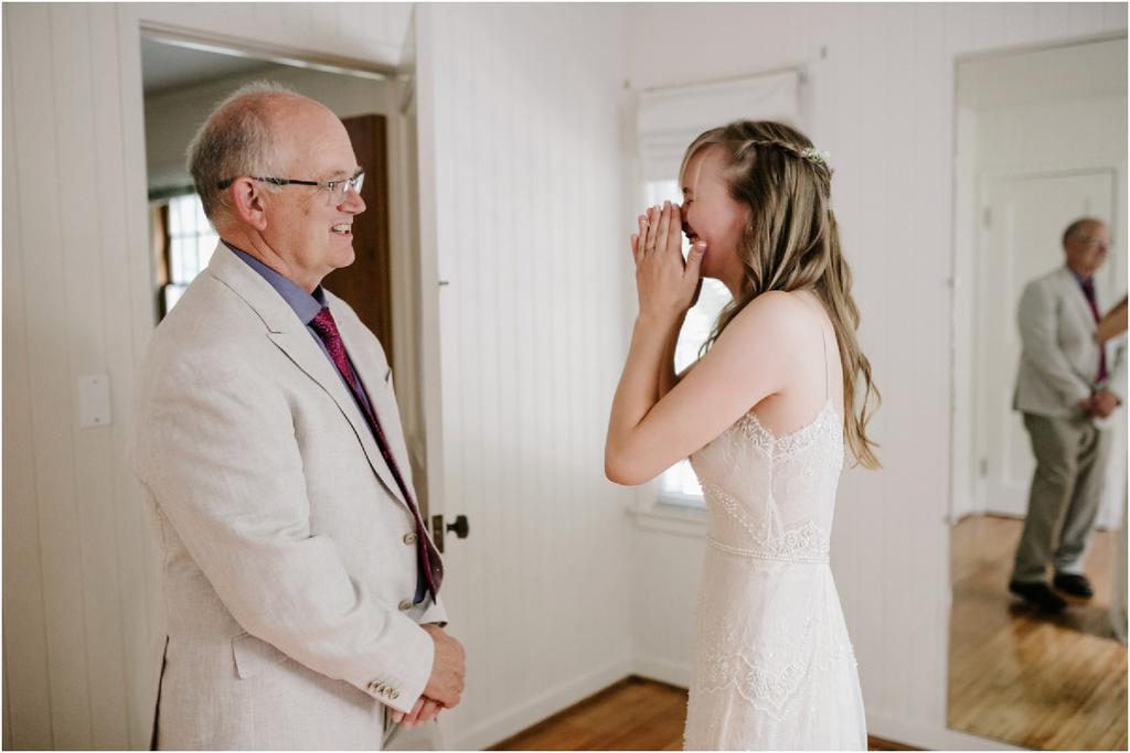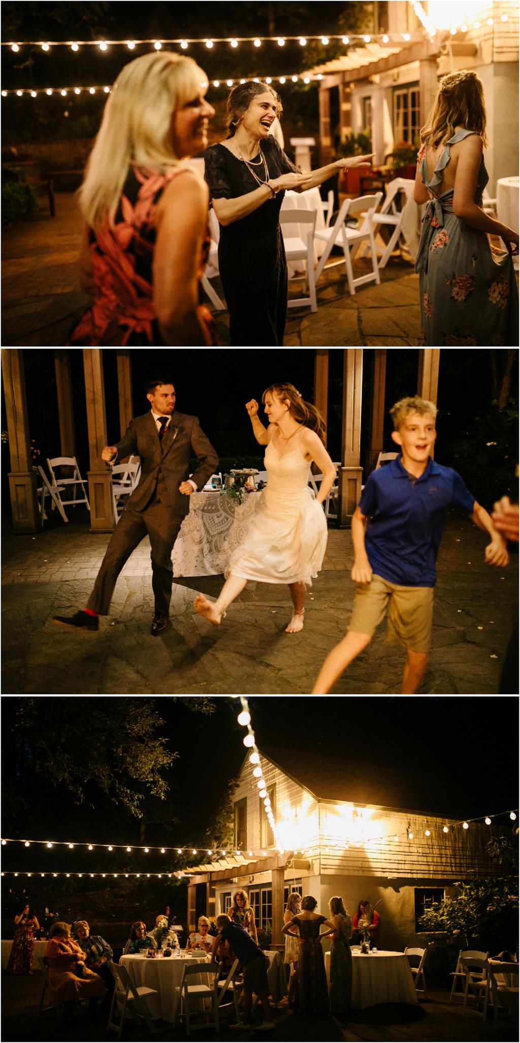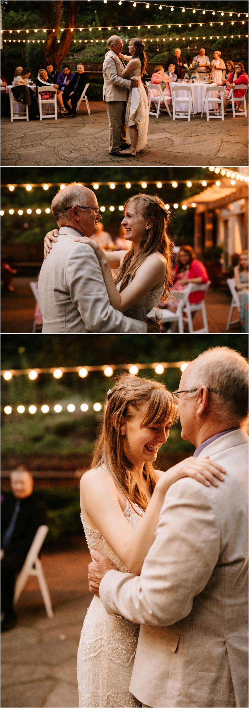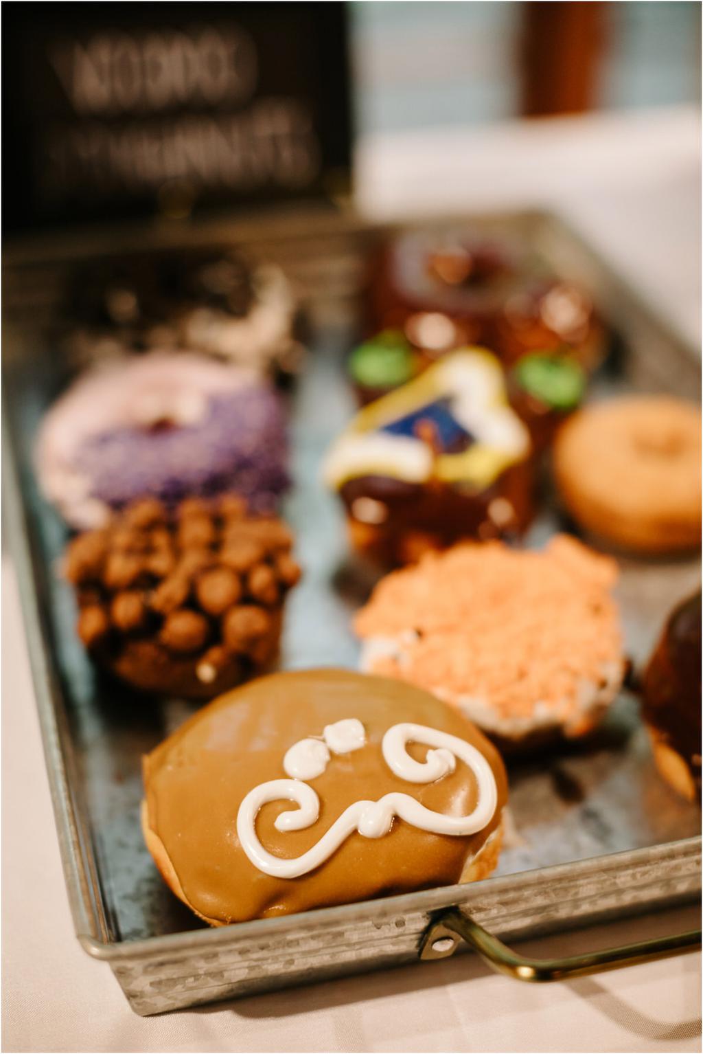 Their Leach Botanical Garden wedding started with pizza and ended with S’mores. Instead of serving a full dinner, Elizabeth and Ryan ate Dominos before their wedding and then celebrated after with a sweet tooth. They had coffee, alcohol, kombucha, Voodoo doughnuts and a S’mores Cart! The whole evening was so laid-back and the cool, forested setting couldn’t have been more perfect for them.