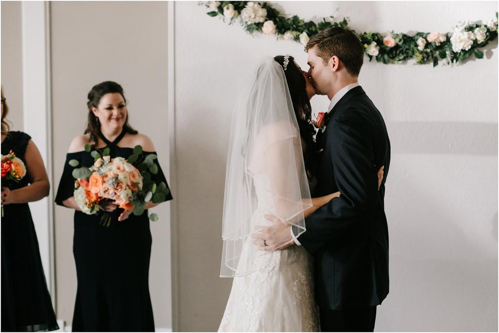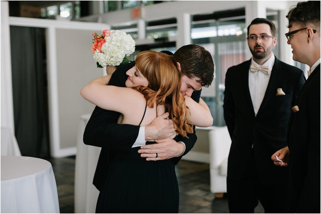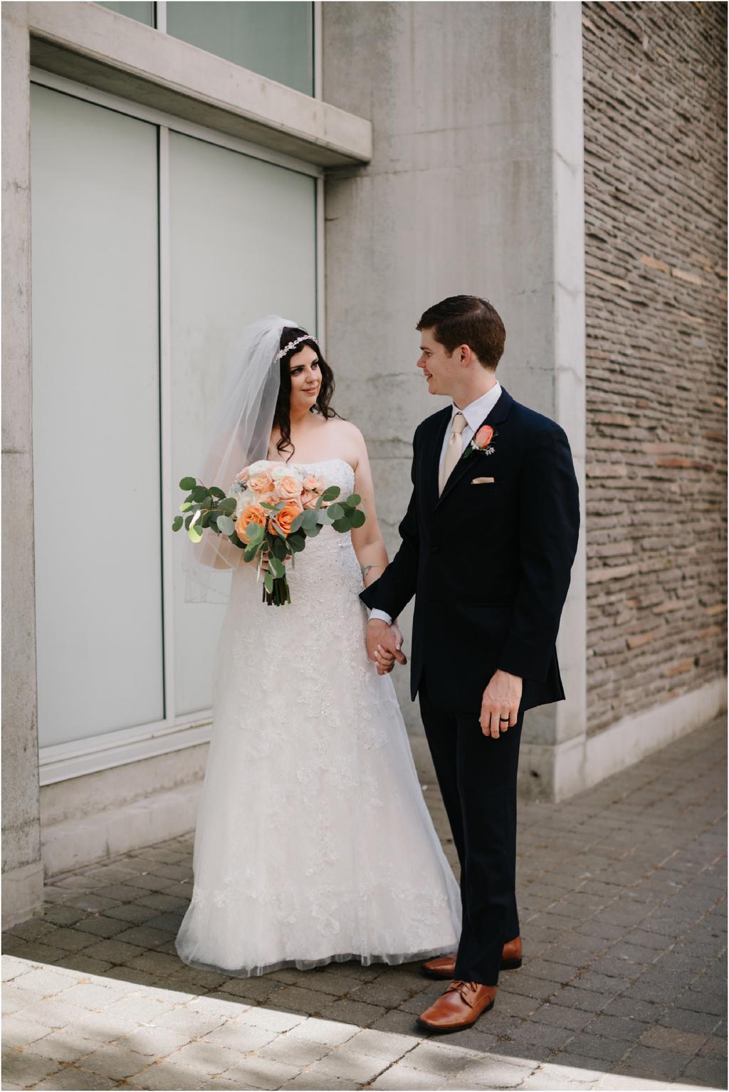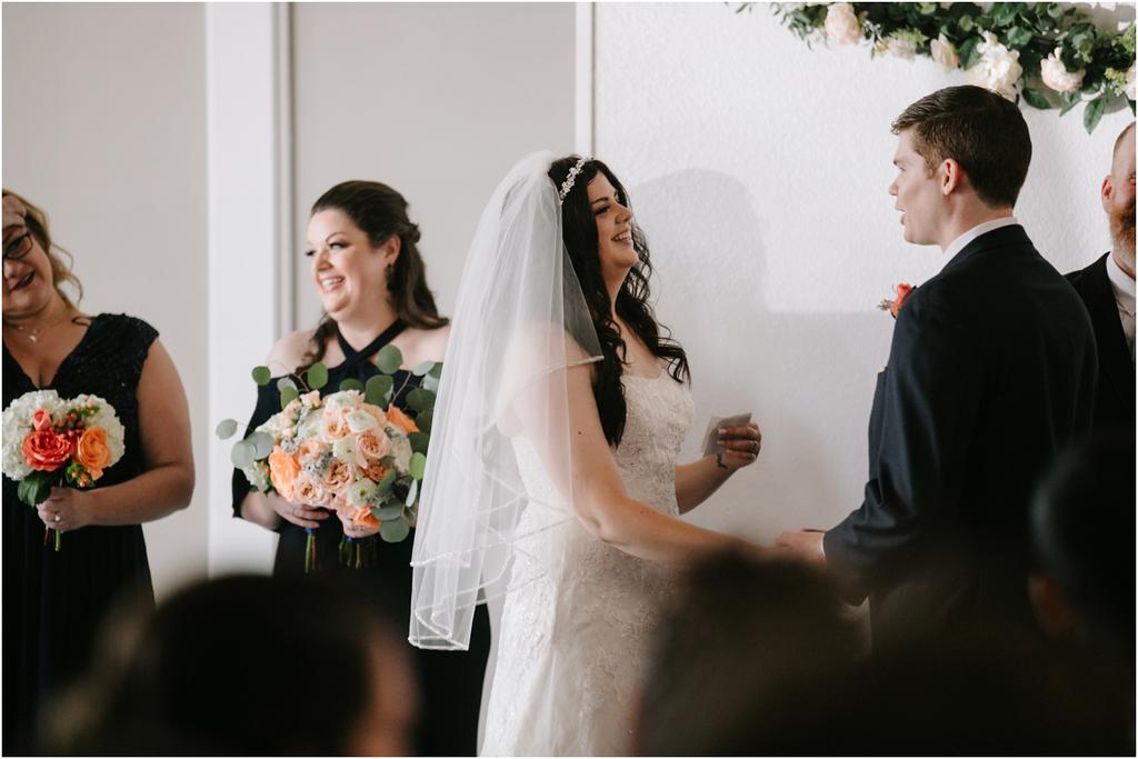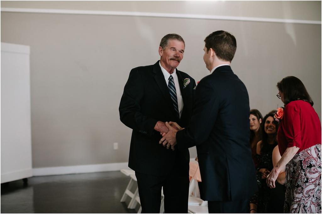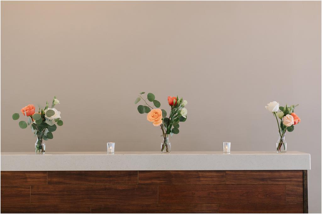It was a HOT Thursday afternoon in downtown Portland. The temperatures were in the upper-90s outside, but Adam and Cece’s Urban Studio wedding was nice and cool indoors. I’ve never been so happy to photograph an indoor wedding in my life haha. Especially at a venue as beautiful as this one! Adam and Cece envisioned their Portland Urban Studio wedding as modern, formal and metropolitan. Their decor was minimal but gorgeous โ focusing on the clean, industrial lines of the space with a few soft pink and coral florals to balance it out. The result was classic and timeless and it suited them perfectly. Something I loved about this wedding was the subtle intimacy between Adam and Cece throughout the evening. When I asked them what mattered most to them during the day, those little moments were hands down the most important to them. They wanted to remember the way that they looked at each other that night. The stolen glances. The big smiles and the tears. All of it.