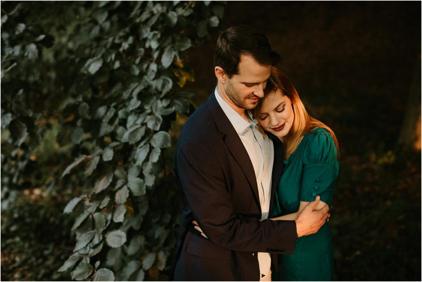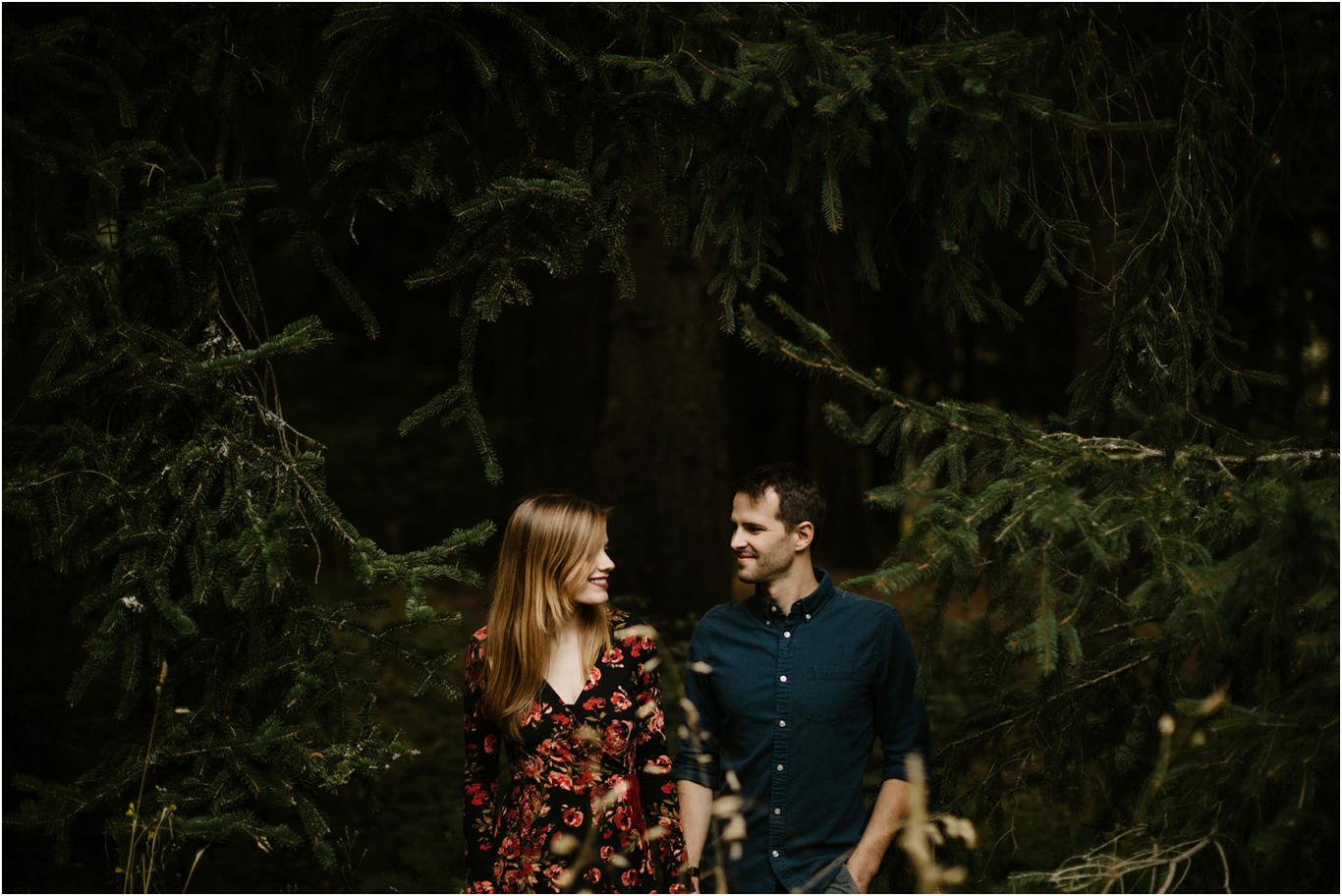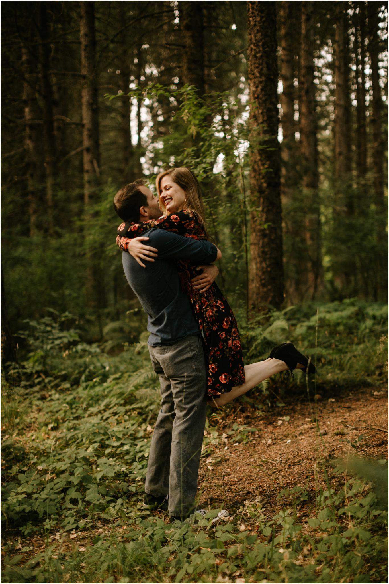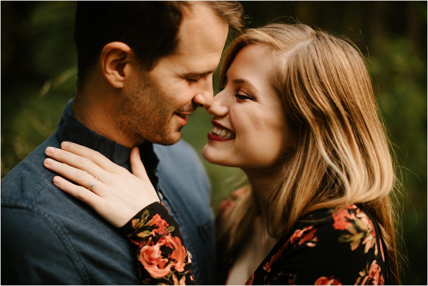 I took these Hoyt Arboretum engagement photos back in August when Portland was still floating in a sea of smoke. The orange light had a peculiar, otherworldly quality. While it bugged me, it also inspired me. I loved the way the light washed over Natasha’s golden hair, bringing out the rich beauty of it. I loved the warm pockets it created in the forest. I despise the destruction the fires cause and the pain they bring to my lungs, but there is still beauty in all of it. And these Hoyt Arboretum engagement photos show it off perfectly. Something I love about Hoyt is how it can photograph either light and airy, or very dark and moody. It depends entirely on where you take the photos and how you use light. I love that there are so many beautiful options in one place. Natasha and Preston told me that when they first met, they actually disliked each other. It was one of those relationships that began with strong emotions, and those strong emotions went from negative to positive. Now they have a beautiful, confident love and I am stoked to photograph their Oregon wedding reception in a few months