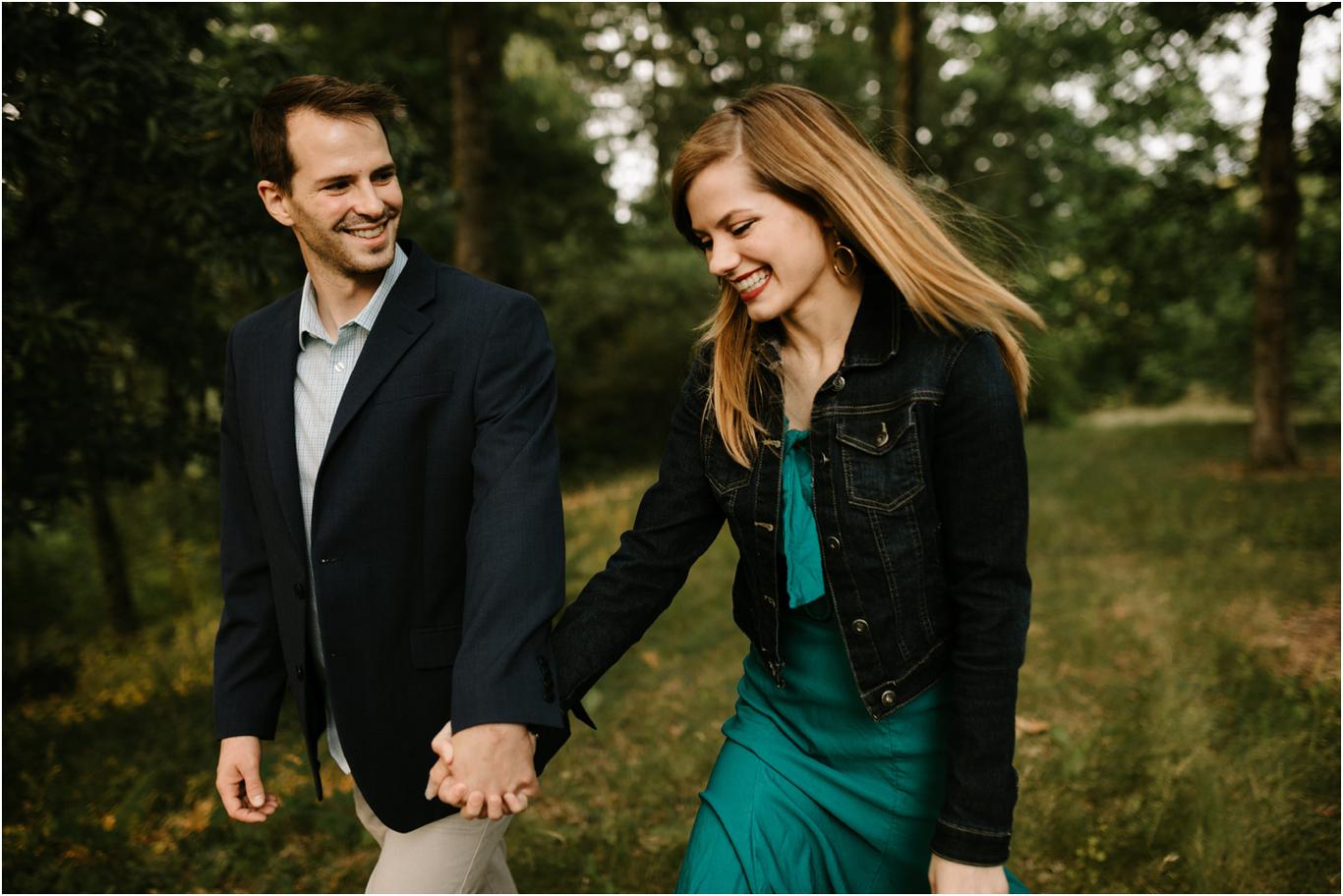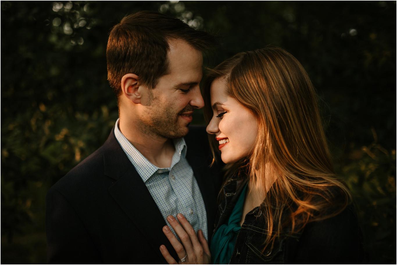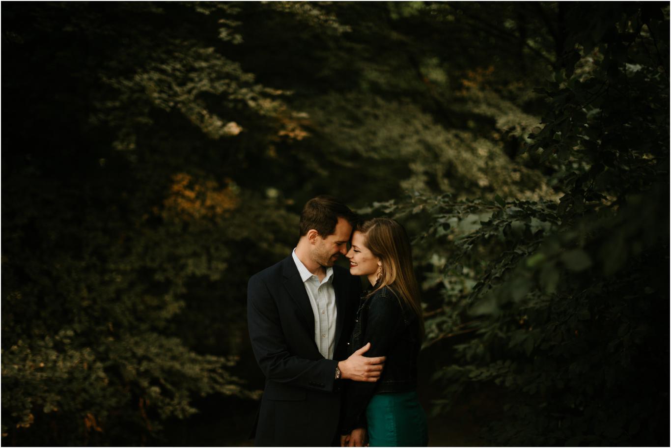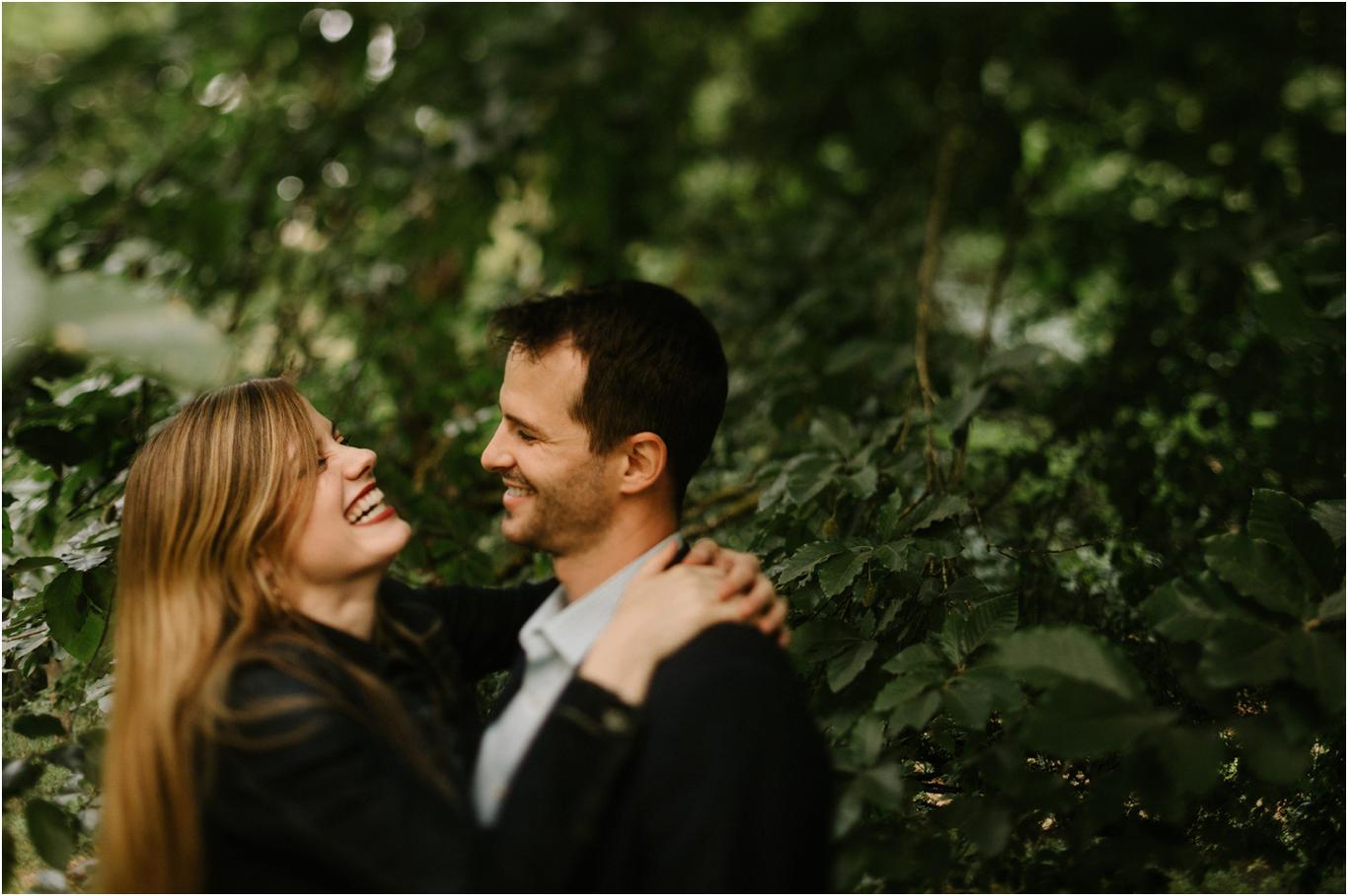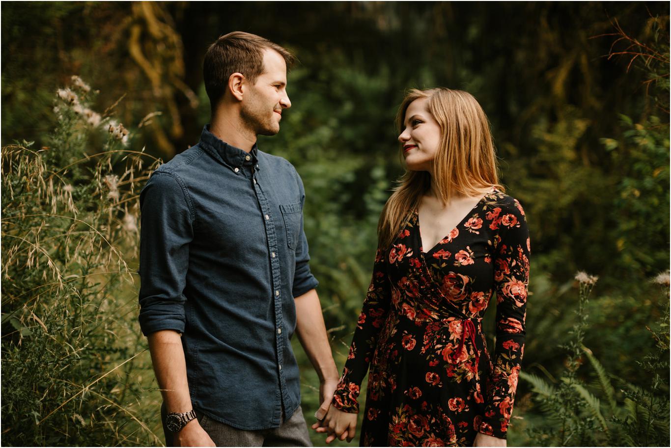 I took these Hoyt Arboretum engagement photos back in August when Portland was still floating in a sea of smoke. The orange light had a peculiar, otherworldly quality. While it bugged me, it also inspired me. I loved the way the light washed over Natasha’s golden hair, bringing out the rich beauty of it. I loved the warm pockets it created in the forest. I despise the destruction the fires cause and the pain they bring to my lungs, but there is still beauty in all of it. And these Hoyt Arboretum engagement photos show it off perfectly. Something I love about Hoyt is how it can photograph either light and airy, or very dark and moody. It depends entirely on where you take the photos and how you use light. I love that there are so many beautiful options in one place. Natasha and Preston told me that when they first met, they actually disliked each other. It was one of those relationships that began with strong emotions, and those strong emotions went from negative to positive. Now they have a beautiful, confident love and I am stoked to photograph their Oregon wedding reception in a few months