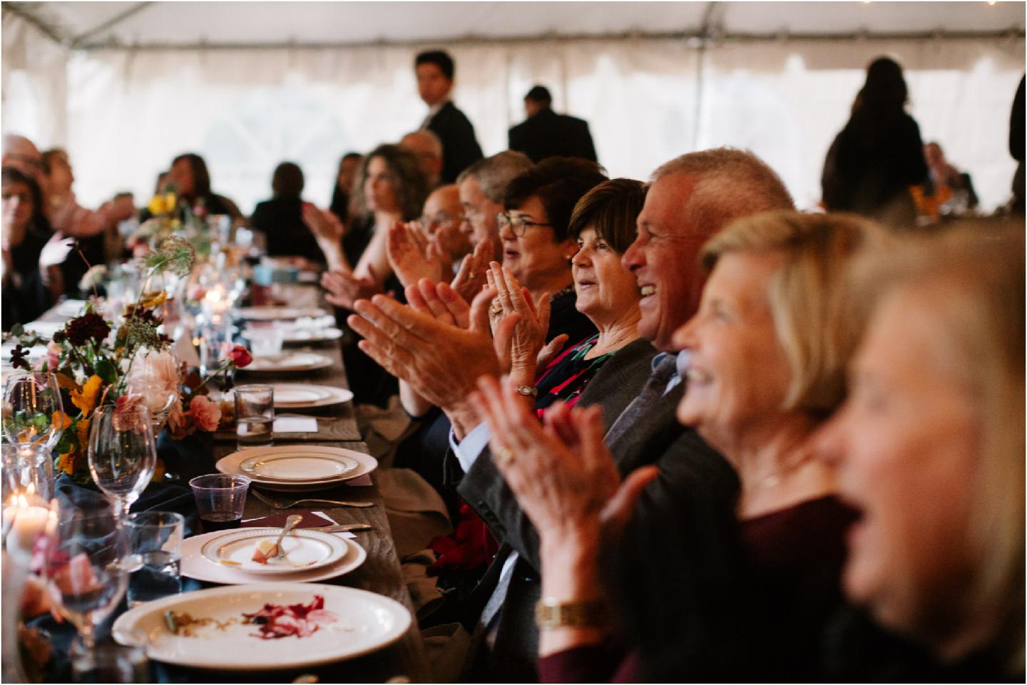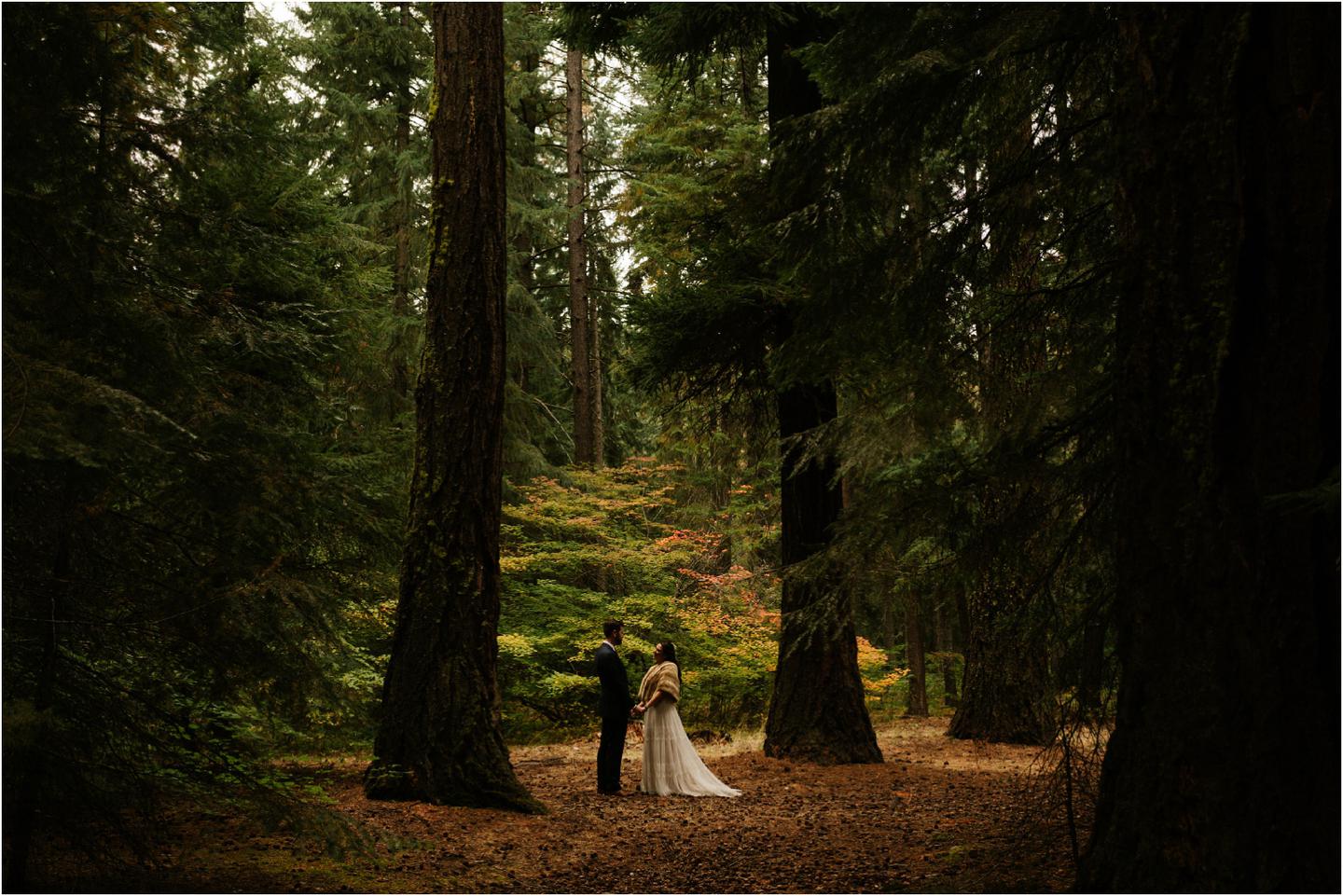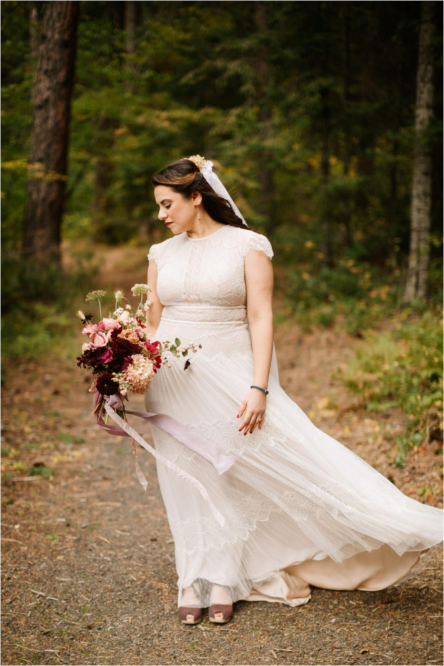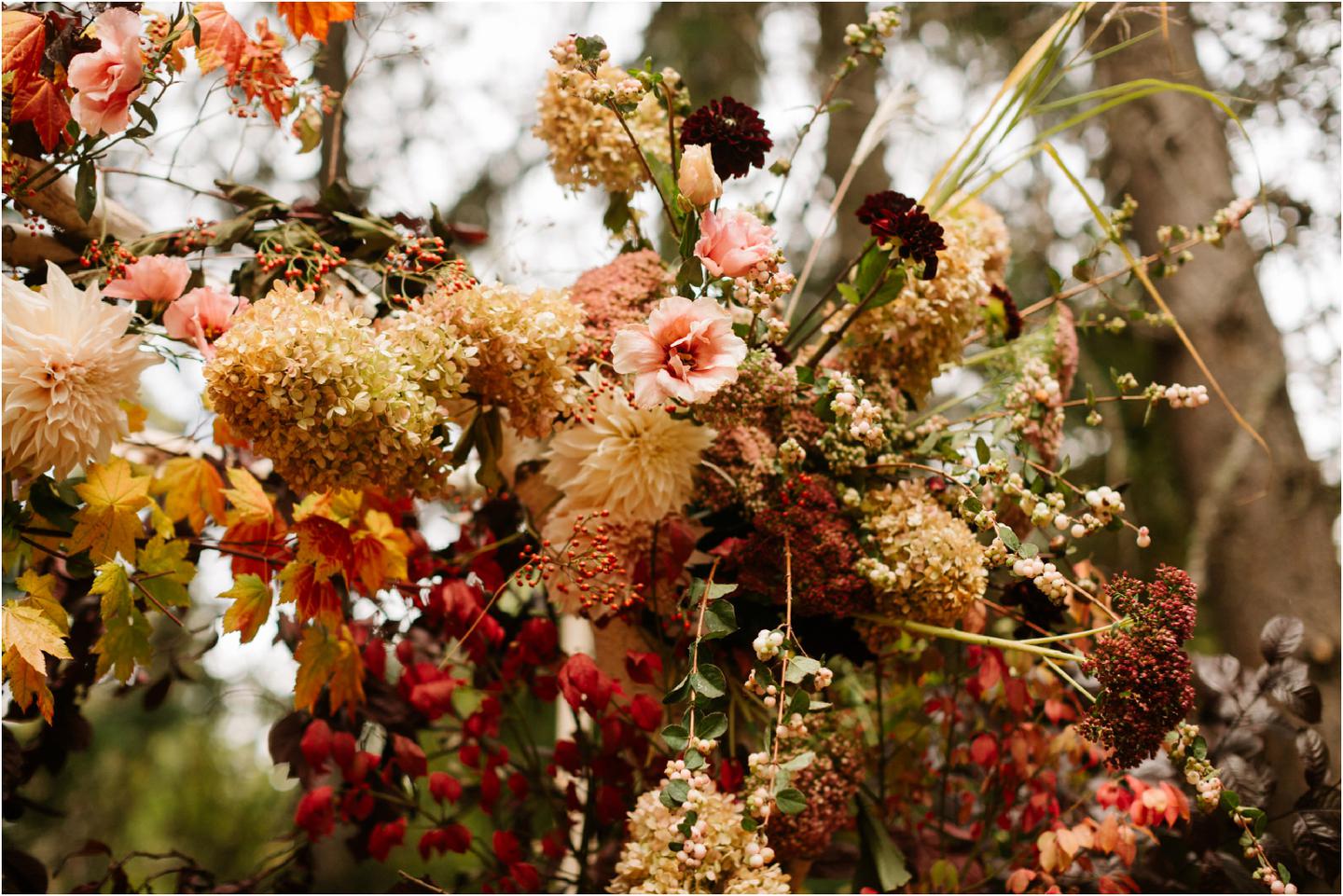 Jim and Candice became good friends and fell in love while wandering around the Pacific Northwest. They loved Oregon and wanted to have their wedding in a place with stunning natural beauty in the forest. My kinda people! They decided to have a Suttle Lake Lodge wedding because of its rustic but modern vibe, plus it’s epic lakefront views. They loved that the entire place was an outdoor playground. They felt like their guests could have a weekend-long experience in their outdoors, complete with hiking, campfires, kayaking and cozy cabin vibes. Candice and Jim decided not to have bridesmaids or groomsmen, but instead asked all their closest friends to wear bold jewel tones. The group photo looked SO awesome and it was such a great way to include friends without the stress of a huge bridal party! The thing I loved MOST about the entire weekend wasn’t the stunning fall colors, the gorgeous venue, the epic flowers, or the tasty food. It was Candice and Jim themselves. Their kindness was incredible. Since they found my work online in early 2017, Candice and Jim went from being complete strangers to people who are honestly my friends. I love Candice’s warm and lively personality and how it compliments Jim’s quieter side. I love how smart they both are and how passionate they are about everything they do. They are welcoming, friendly, and fun. Getting to know them has been such a blessing in my life!
