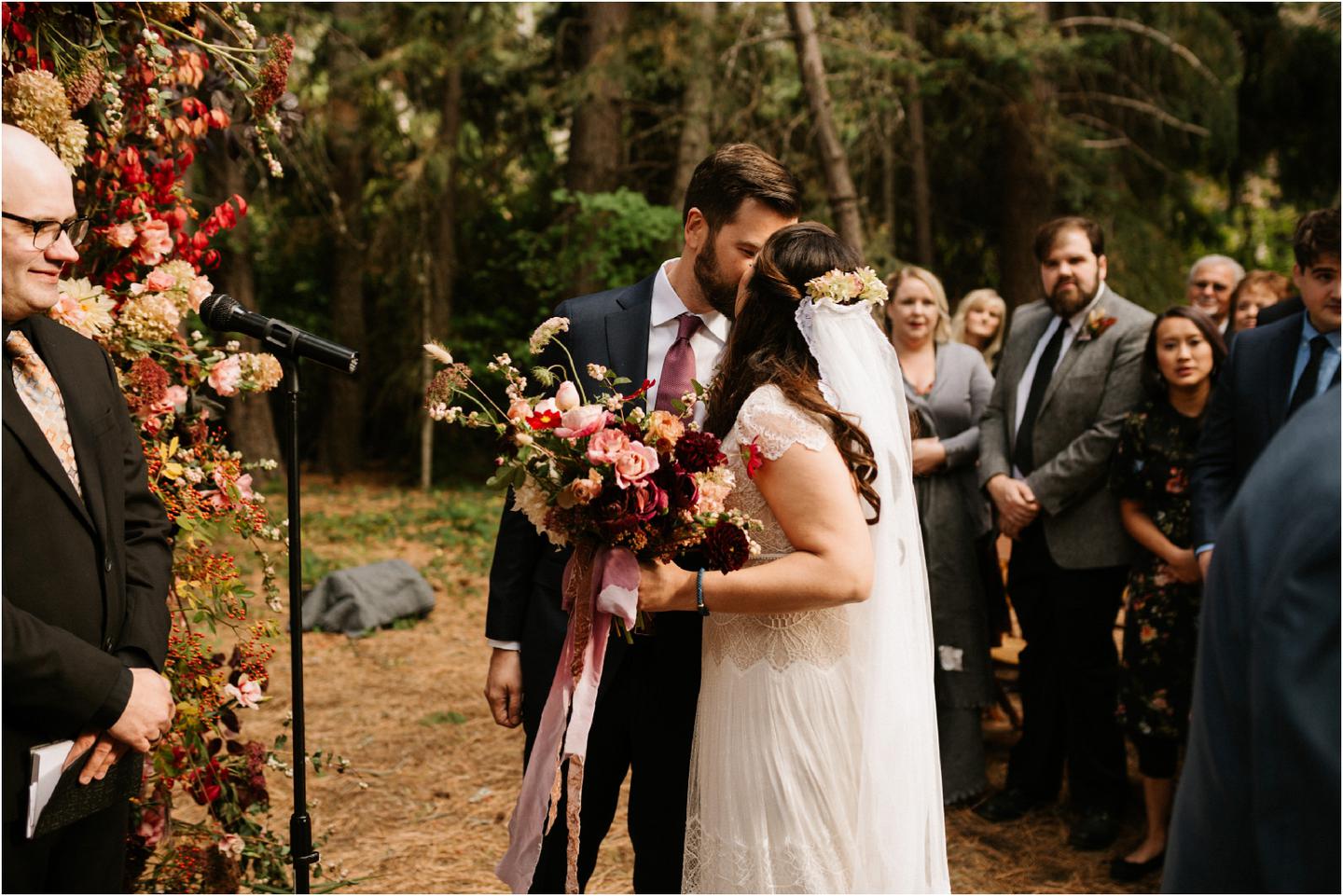 I am SO excited to share this Suttle Lake Lodge wedding with you! It was just featured on Junebug Weddings yesterday, so I figured it was the perfect time to blog it as well! You might remember Candice and Jim from their epic engagement photos at Smith Rock! They are one of my all-time favorite couples and their wedding was truly amazing. Candice has such an incredible eye for design, and she really allowed herself to have fun with the planning process. She even did a bunch of the calligraphy herself! Their wedding took place at Suttle Lake Lodge, a venue I adore, and it had those perfect cabin-in-the-forest vibes. It was a destination wedding, and the whole weekend felt warm and cozy, with free-flowing wine, bonfires, and so much beautiful conversation. It was SO fun to be a part of it all! This was such a dream wedding for me.